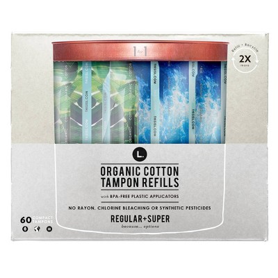 I have a favorite brand that I use and buy at target for $6.99 (30 count). I love them because they are compact, leak-proof and the plastic applicator is BPA- free. L. is the name of the brand and their Organic Cotton Tampons are made with GOTS (Global Organic Textile Standard) Certified Organic Cotton. They are also free of chlorine bleaching, rayon, pesticides, fragrances and dyes. They are also sold on Amazon but the price is higher there than it is at Target.